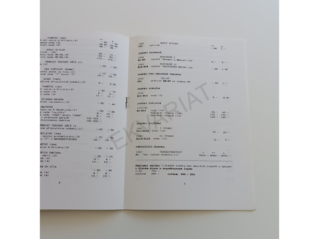 Ceník poštovních známek platných na území ČSR 1939-1945 (1990)