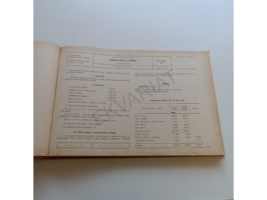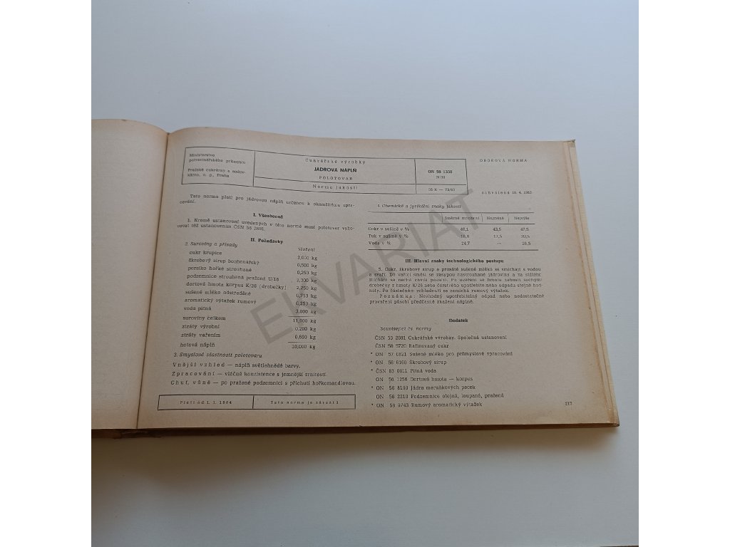 Cukrářské oborové normy jakosti 1 - Polotovary pro cukrářskou výrobu (1972)