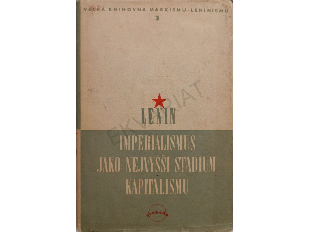 Anotace 1949: Hluboká analysa hospodářské podstaty imperialismu, jenž je obdobím zahnívajícího, rozkládajícího se kapitalismu, a rozvedení učení marxismu pro toto období. Lenin označuje imperialismus „předvečerem socialistické revoluce“. Toto jeho zjištění se naplňuje velkou říjnovou socialistickou revolucí, které Lenin především tímto spisem, napsaným na jaře 1916 v Curychu, připravoval cestu. Lenin se také kriticky vyrovnává s oportunismem a maloměšťáctvím vůdců II. Internacionály, očišťuje původní učení klasiků marxismu a vrací mu jeho revoluční poslání. Jednotlivé kapitoly: I. Koncentrace výroby a monopoly. II. Banky a jejich nová úloha. III. Finanční kapitál a finanční oligarchie. IV. Vývoz kapitálu. V. Rozdělení světa mezi svazy kapitalistů. VI. Rozdělení světa mezi velmocemi. VII. Imperialismus jako zvláštní stadium kapitalismu. VIII. Parasitismus a zahnívání kapitalismu. IX. Kritika imperialismu. XX. Místo imperialismu v dějinách.