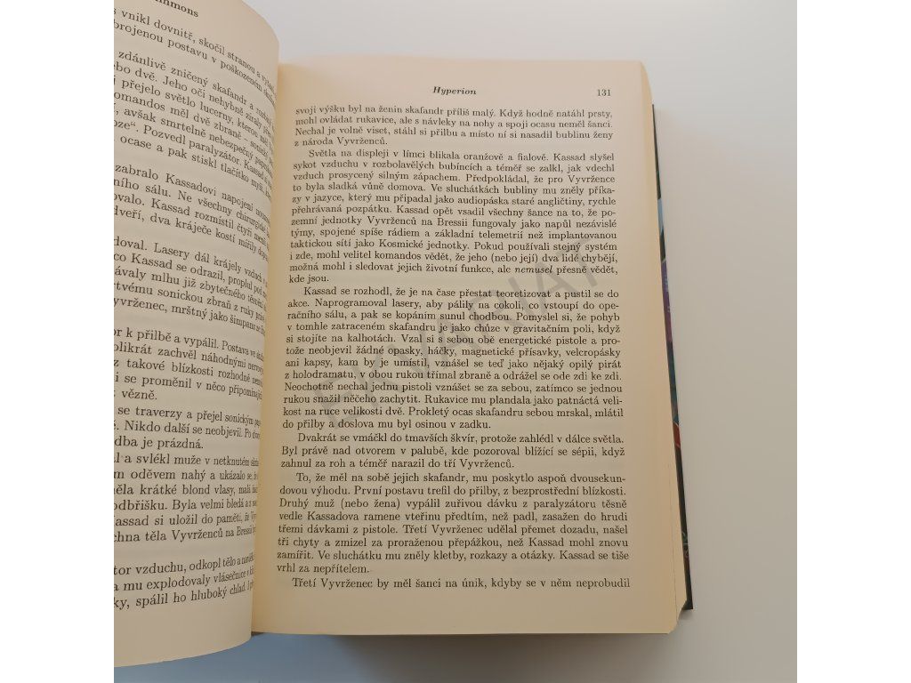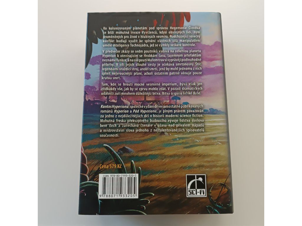 Ke kolonizovaným planetám pod správou Hegemonie Člověka se blíží mohutná invaze Vyvrženců, kdysi obyčejných lidí, nyní proměněných pro život v hlubinách vesmíru. Nadcházející válečný konflikt hodlají využít ke splnění vlastních cílů manipulativní umělé inteligence Technojádra, jež se vymkly veškeré kontrole. V předvečer zkázy se sedm poutníků vydává na odlehlou planetu Hyperion k otevírajícím se Hrobkám času, tajemným artefaktům neznámé funkce, a na své pouti Mořem trav si vyprávějí podivuhodné příběhy. V cíli jejich dlouhé cesty je očekává smrtonosný Štír, legendární vraždící stroj, anděl smrti, jenž by mohl jednomu z nich splnit nejvroucnější přání, ačkoli ostatním patrně věnuje pouze krutou smrt. Tam, kde se hroutí mocné vesmírné impérium, bývá však jen zřídkakdy vše, jak by se zprvu mohlo zdát. V pozadí dramatických událostí zuří mnohem důležitější bitva. Bitva o spásu lidské duše.