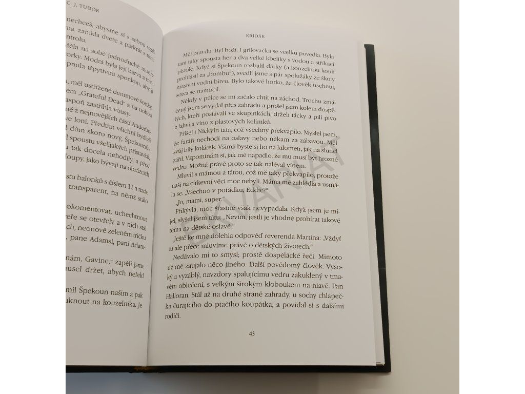 Všichni máme tajemství. Před některými utíkáme, ale ona si nás najdou. A některé hry končí vždycky stejně… Mysteriózní thriller Kříďák je tu – a nedá se před ním utéct. Cítíte to v lese, ve škole i na hřišti, cítíte to v domech a v lunaparku. Cítíte to na většině míst v malém městečku Anderbury… strach, že vás někdo nebo něco sleduje. Začalo to na pouti roku 1986, kdy se stala ta nehoda. Toho dne potkal dvanáctiletý Eddie pana Hallorana – pana Křídu. Ten přivedl Eddieho na myšlenku nevinné hry pro něj a partu jeho přátel: za pomoci křídových kreseb si mohli nechávat vzkazy. Byla to docela zábava – dokud je křídoví panáčci nedovedli k tělu. Mrtvému dívčímu tělu, rozřezanému na kousky. Tahle událost se jim nesmazatelně vryla do nočních můr. A třicet let poté najdou v dopisních schránkách záhadnou obálku – s panáčkem a kusem křídy. Strašáci z dětských let totiž možná stále dokážou zabíjet.