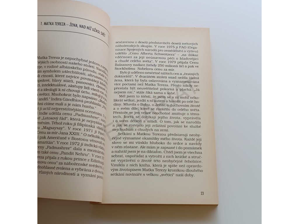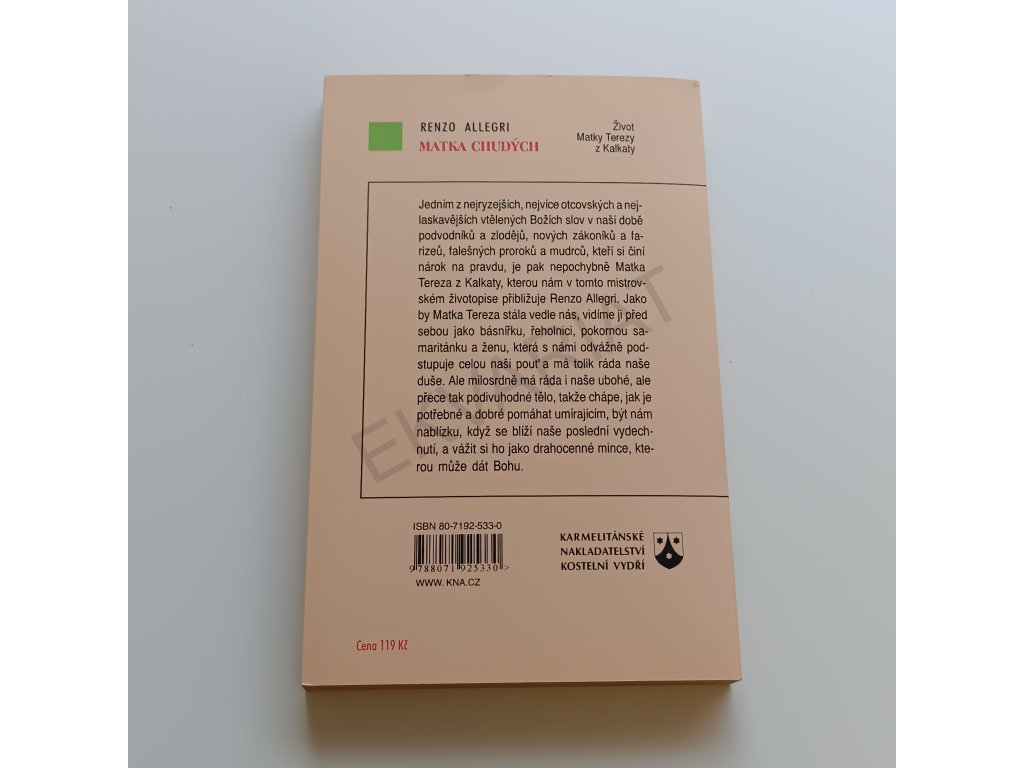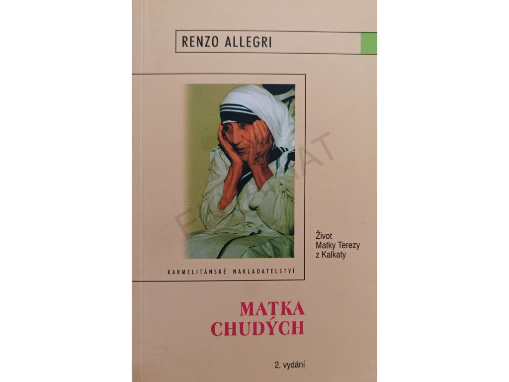 Jedním z nejryzejších, nejvíce otcovských a nejlaskavějších vtělených Božích slov v naší době podvodníků a zlodějů, nových zákoníků a farizeů, falešných proroků a mudrců, kteří si činí nárok na Pravdu je nepochybně Matka Tereza z Kalkaty, kterou nám v tomto mistrovském životopise přibližuje Renzo Allegri. Jakoby Matka Tereza stála vedle nás, vidíme ji před sebou jako básnířku, řeholnici, pokornou samaritánku a ženu, která s námi odvážně podstupuje celou naši pouť a má tolik ráda naše duše. Ale milosrdně má ráda také naše ubohé, a přece tak podivuhodné tělo, takže chápe, jak je potřebné a dobré pomáhat umírajícím, být nám nablízku, když se blíží naše poslední vydechnutí.