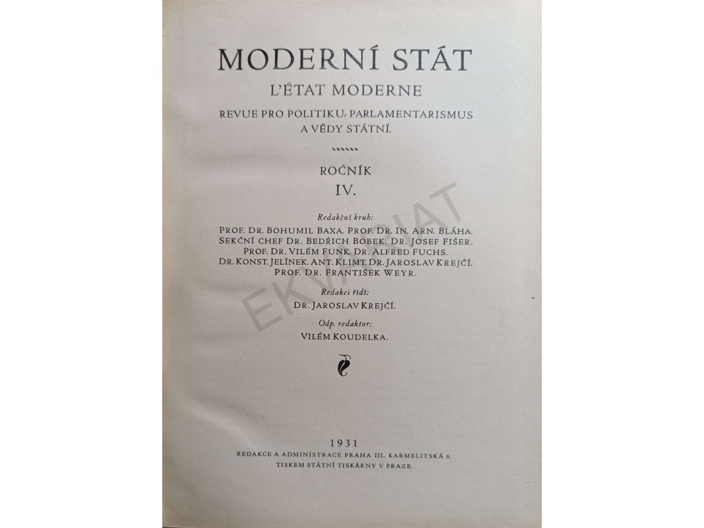 Soubor obsahuje kompletní IV. ročník časopisu Moderní stát.