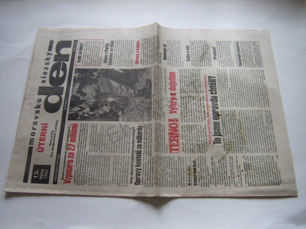 - Výtisk 88: patrný ohyb, pokrčený