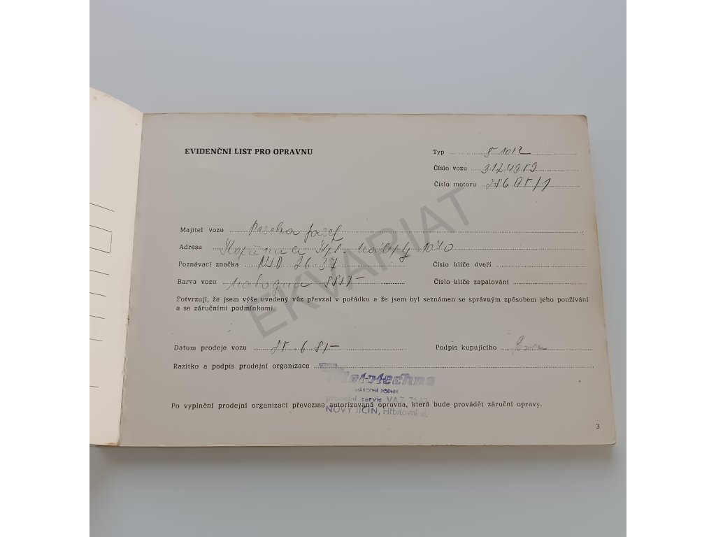• Knižní blok: na několika stranách poznámky, dva listy částečně utržené (záruční list)