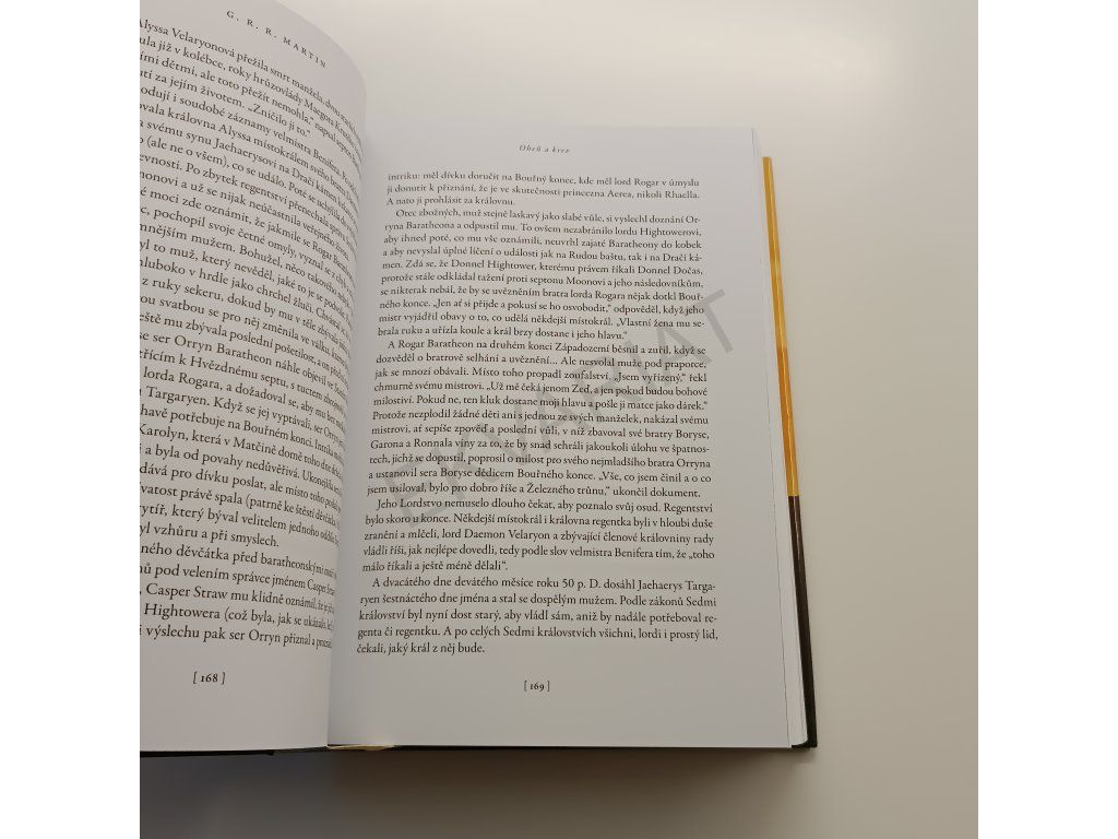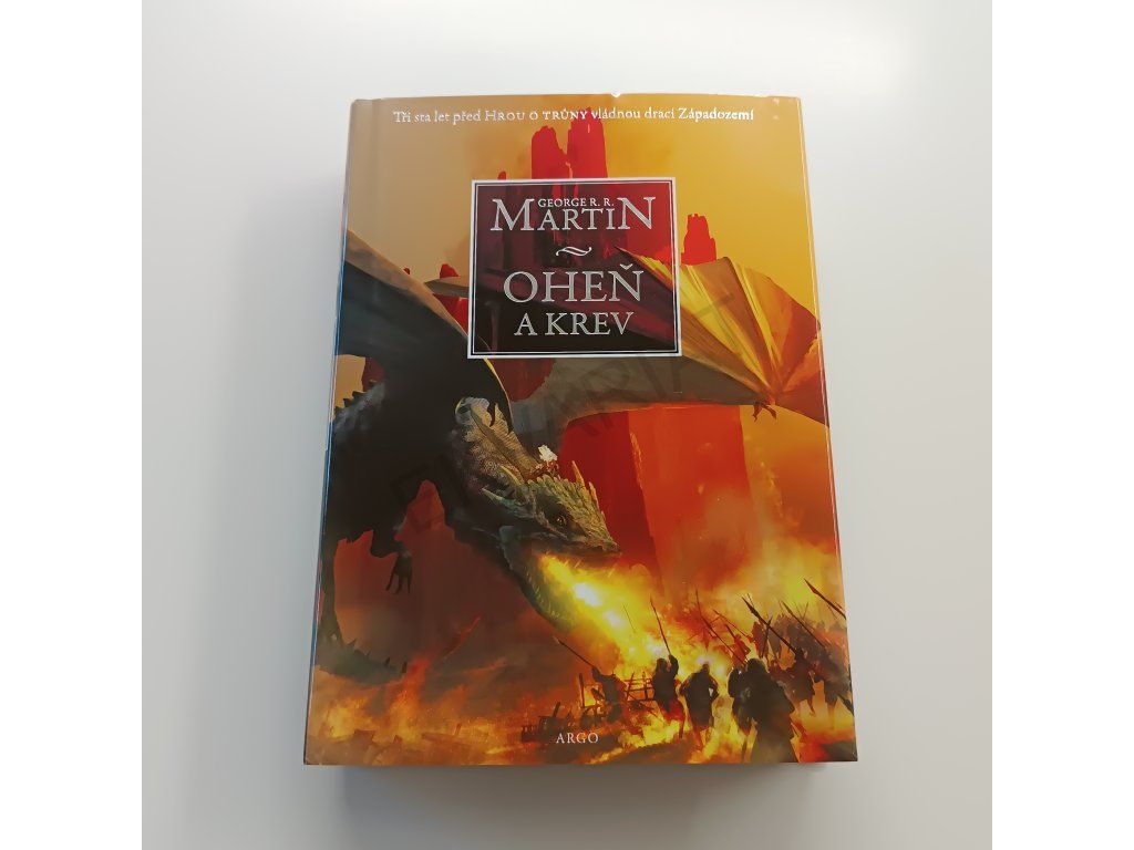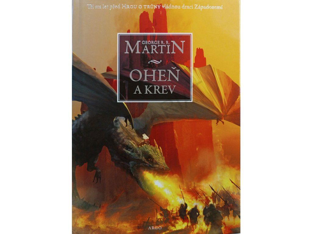 Oheň a krev, úvodní svazek dvoudílných dějin rodu Targaryenů, představuje ty nejvyhrocenější podoby hry o trůny a nabízí zcela nový pohled na bouřlivou, často krvavou a vždy fascinující historii Západozemí.Staletí před událostmi líčenými ve Hře o trůny se rod Targaryenů – ti jediní z dračích pánů, kteří unikli Zkáze Valyrie – usídlil na Dračím kameni. Příběh Ohně a krve začíná u legendárního Aegona Dobyvatele, stvořitele Železného trůnu, a pokračuje přes generace Targaryenů bojujících o tento neblaze proslulý symbol, až po občanskou válku, která jejich dynastii téměř zničila. Co se doopravdy dělo během Tance draků? Proč bylo tak smrtelně nebezpečné vypravit se do Valyrie po Zkáze? Odkud pocházejí dračí vejce, která dostala Daenerys? To je jen několik z mnoha otázek, na něž najdete odpověď v kronice psané učeným mistrem Citadely a doprovázené desítkami ilustrací Douga Wheatleyho. Do tohoto příběhu jsme mohli letmo nahlédnout už v knihách, jako byl Svět ledu a ohně, ale teprve nyní se před námi spletitá historie Targaryenů odhaluje do posledního detailu.