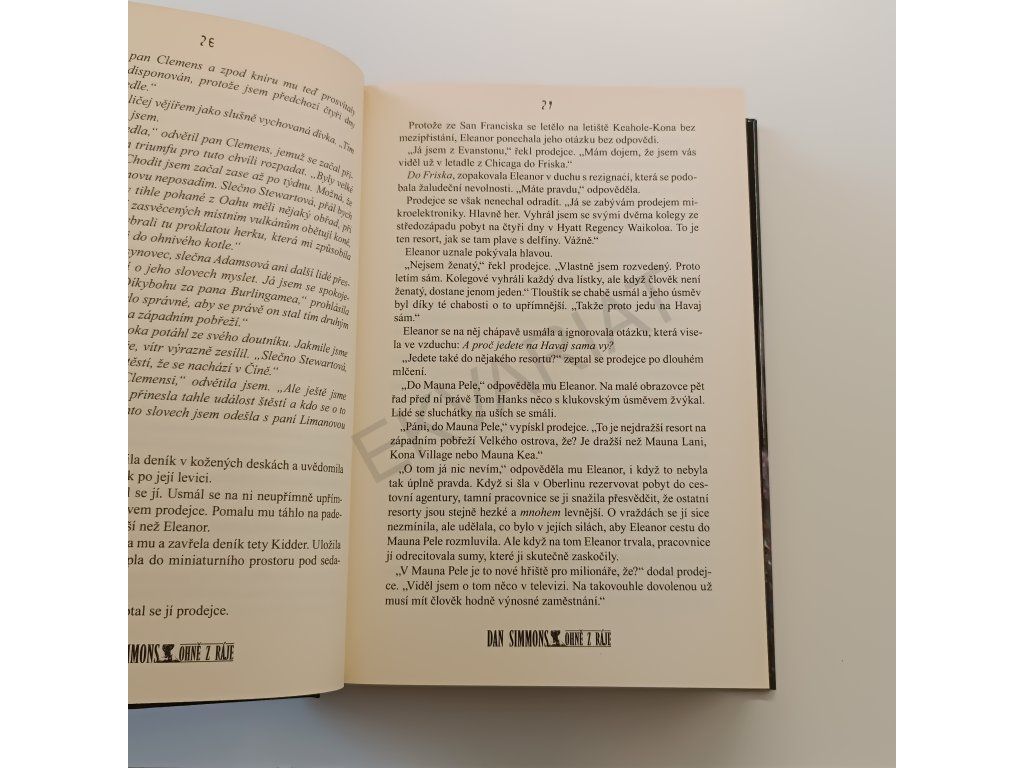 Havaj… Opálení a usměvaví domorodci, tradiční tance a zpěvy, země zaslíbená pro všechny surfaře, majestátní příroda a luxusem oplývající hotelové resorty… Ale existuje i jiná Havaj. Havaj děsivých sopek, krutých božstev a lidských obětí… Simmons tentokrát vypráví o střetu nového a starého, o boji prapůvodních sil, ale také o tom, jak mohou jednomu miliardáři hatit plány jeho tři milenky, mrtvoly hotelových hostů v golfových jamkách a dvousetkiloví havajští extremisté… Ohně z ráje jsou horor, který se nebere úplně vážně, ale cožpak se můžeme divit, když jedním z hrdinů je Samuel Clemens aka Mark Twain?