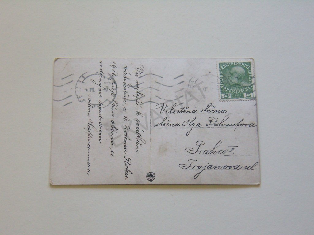 • Známka + razítka (nečitelná)