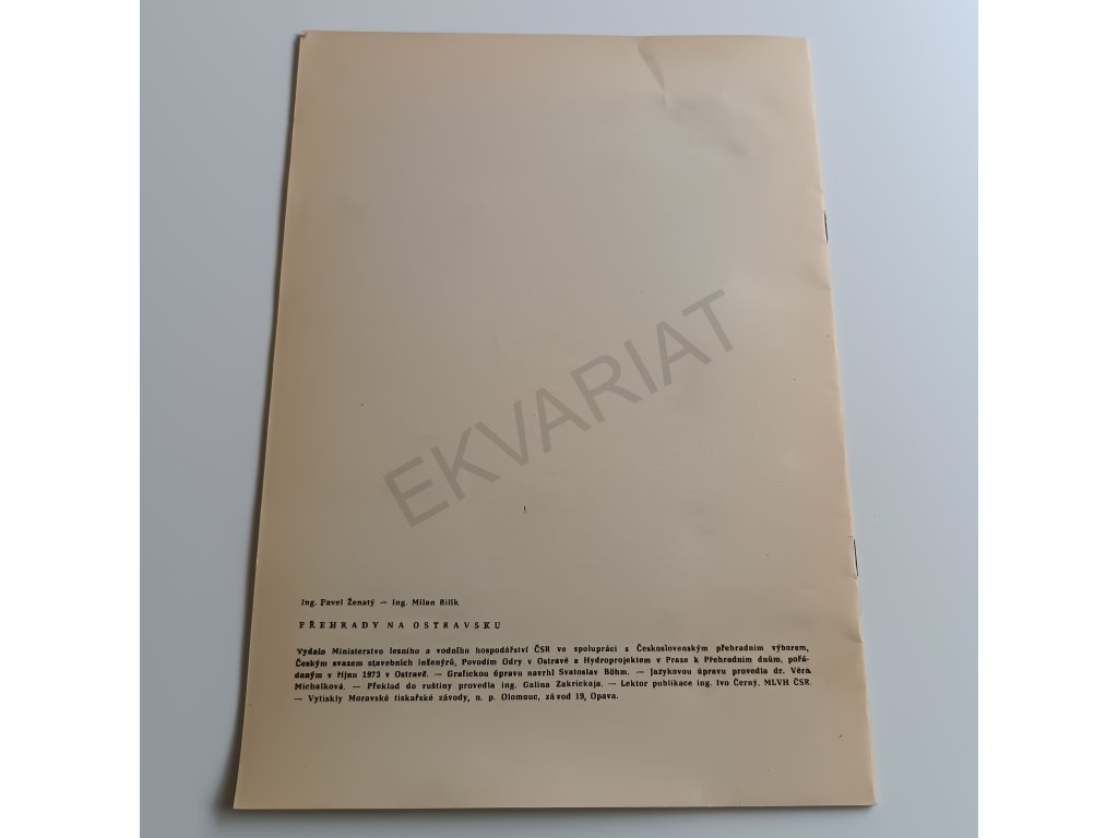 Seznam a technická data přehrad na Ostravsku. Publikace je psaná rusky.