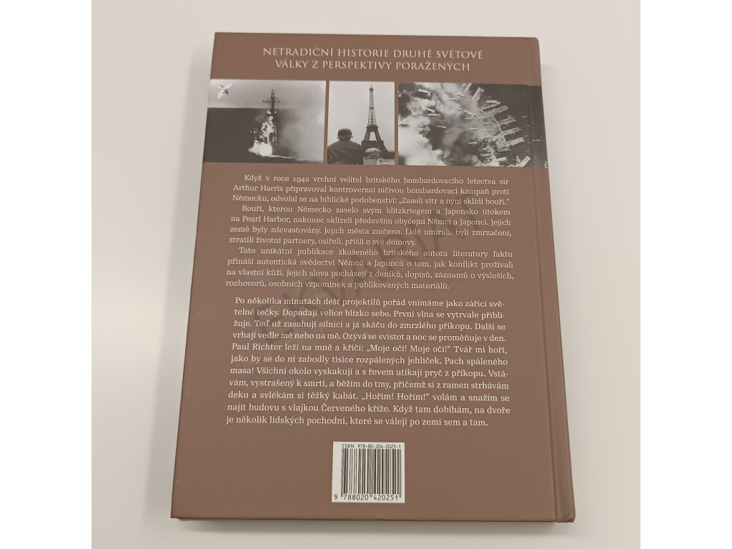 Podtitul: druhá světová válka z německého a japonského pohledu Když v roce 1942 vrchní velitel britského bombardovacího letectva sir Arthur Harris připravoval kontroverzní ničivou bombardovací kampaň proti Německu, odvolal se na biblické podobenství: "Zaseli vítr a nyní sklidí bouři." Bouři, kterou Německo zaselo svým blitzkriegem a Japonsko útokem na Pearl Harbor, nakonec sklízeli především obyčejní Němci a Japonci. Jejich země byly zdevastovány. Jejich města zničena. Lidé umírali, byli zmrzačeni, ztratili životní partnery, osiřeli, přišli o své domovy. Tato unikátní publikace zkušeného britského autora literatury faktu přináší autentická svědectví Němců a Japonců o tom, jak konflikt prožívali na vlastní kůži. Jejich slova pocházejí z deníků, dopisů, záznamů o výsleších, rozhovorů, osobních vzpomínek a publikovaných materiálů.