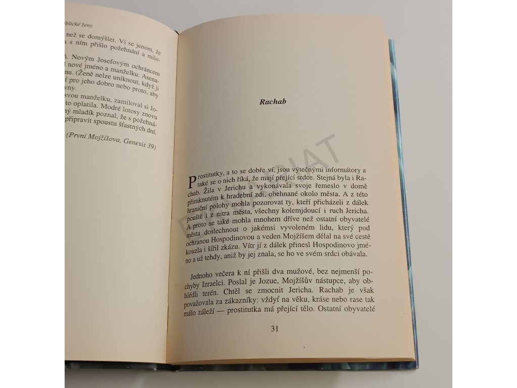 I v bibli jsou panny, rebelky, manželky, svůdkyně, věštkyně a prostitutky. Portréty starozákonních žen (Jezábel, Ester, Salome, Sára, Júdit, Zuzana, Eva, Sára, Ester, Ráchel, Rút, Zuzana… Bible je protkána těmito náhlými zjeveními žen, které vypovídají o Boží závrati, o Božím hněvu, o tom, jak bolestný může být život na této zemi. Vypovídají však také o nepředvídatelné milosti, o hrdinství a odvaze. Portréty biblických žen se snaží být věrné a aktuální, a na pravdivosti jim neubírá ani pomyslné zrnko snění, dovětek k historii či letmý náznak lyrismu.